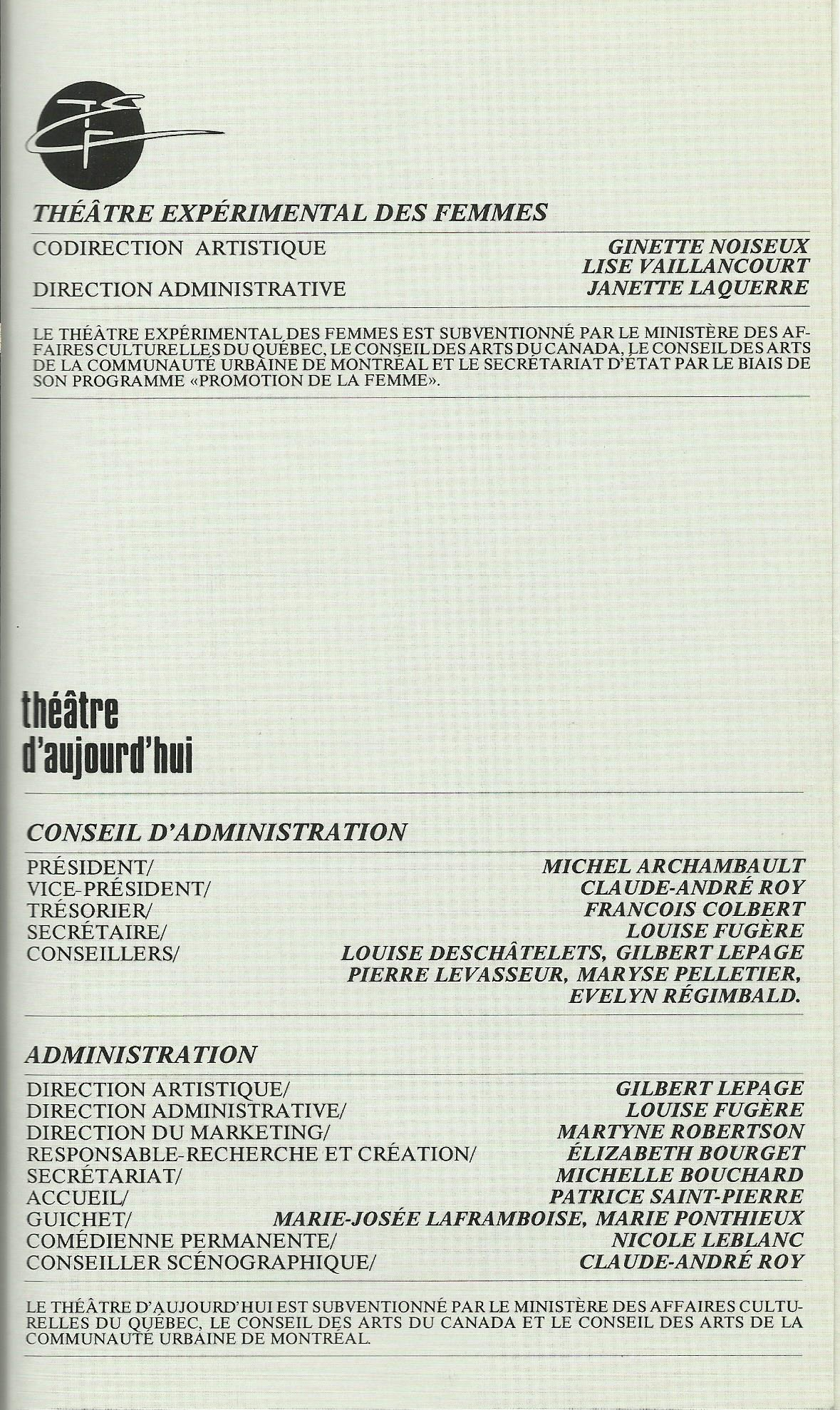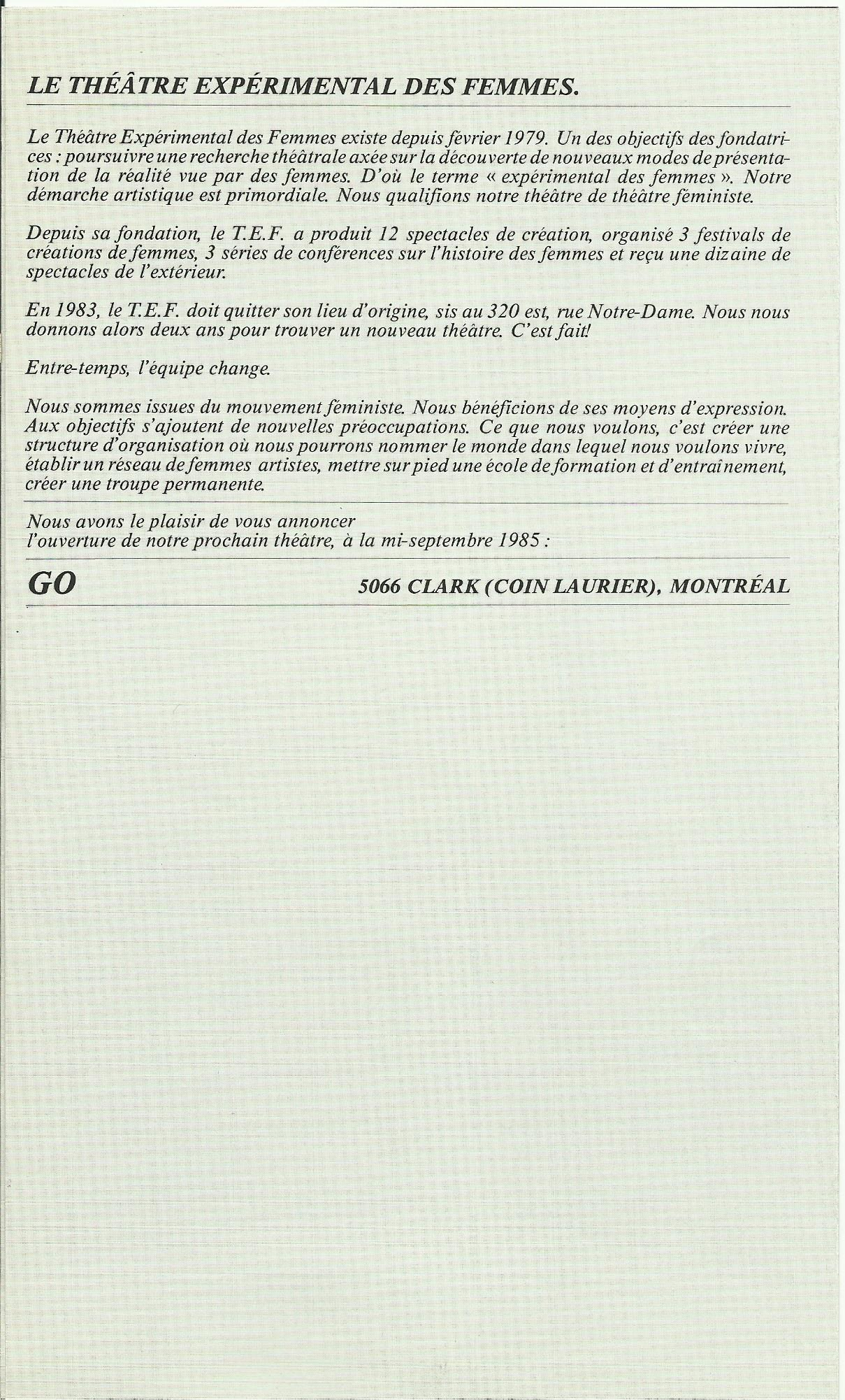 Personne ou groupe dont on voit l'image: Pol PelletierSpectacle/événement référencé: La Lumière blanche, 2e versionThéâtre référencé: Théâtre expérimental des femmesTexte cité ou mentionné: La Lumière blanche, 2e version